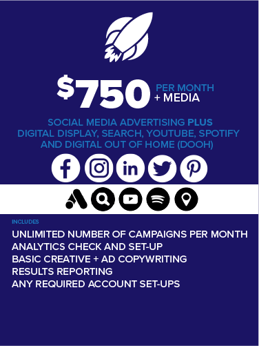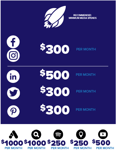 Facebook + Instagram is always a combined spend. All other channels are recommended monthly spends for any given channel. Remember, the choice is yours. These are just our recommended minimum spends.