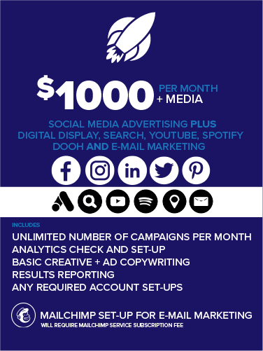 We set the STAGE services price but you set the MEDIA BUY cost. It could be as little as $25/week. However, given our collective years of experience with media buying we’ve provided a recommended minimum media spend.